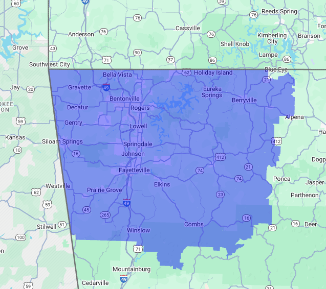 Fayetteville – Springdale – Lowell – Johnson – Rogers – Cave Springs – Bentonville – Pea Ridge – Centerton – Siloam Springs – & More